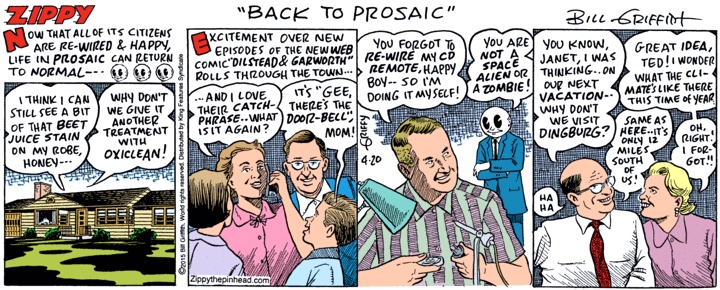 Today’s Zippy, set in the town of Prosaic: