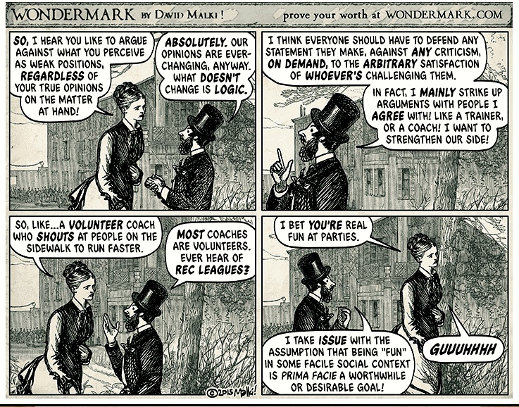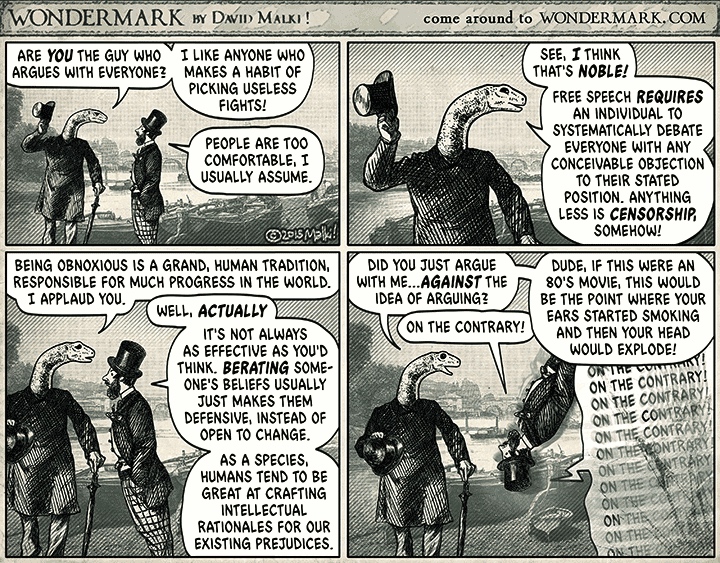 Chances are you’ve seen this comic by David Malki if you frequent Twitter at all these days. It even coined a new verb – “sealioning” – to describe the act of jumping into a discussion with demands for evidence and answers to questions.