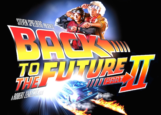Back to the Future Part II is a 1989 American comic science fiction film and the second installment of the Back to the Future trilogy. It was directed by Robert Zemeckis from a screenplay written by Bob Gale, and stars Michael J. Fox, Christopher Lloyd, Thomas F. Wilson and Lea Thompson. The plot picks up immediately where the original film left off. After repairing the damage to history done by his previous time travel adventures, Marty McFly (Fox) and his friend Dr. Emmett “Doc” Brown (Lloyd) travel to 2015 to prevent McFly’s future son from ending up imprisoned. However, their presence allows Biff Tannen (Wilson) to steal Doc’s DeLorean time machine and travel to 1955, where he alters history by making his younger self wealthy. (link)