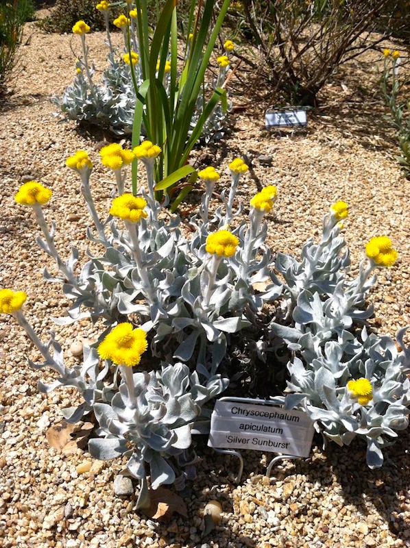 Chrysophalum apiculatum ‘Silver sunburst’ (common everlasting, golden buttons). Here in a photo that looks just like what we saw on Tuesday at GG: