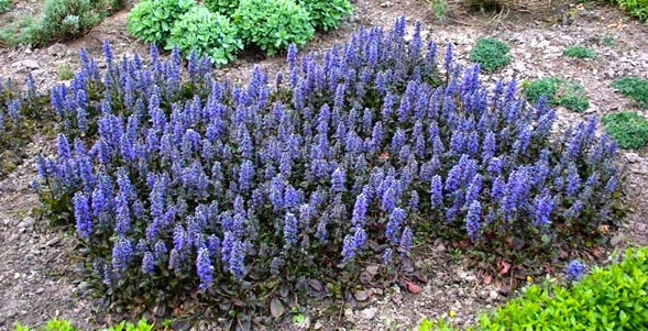 Bonuses: Ajuga reptans (note Latin reptans ‘creeping’; cf. reptile) as a groundcover: