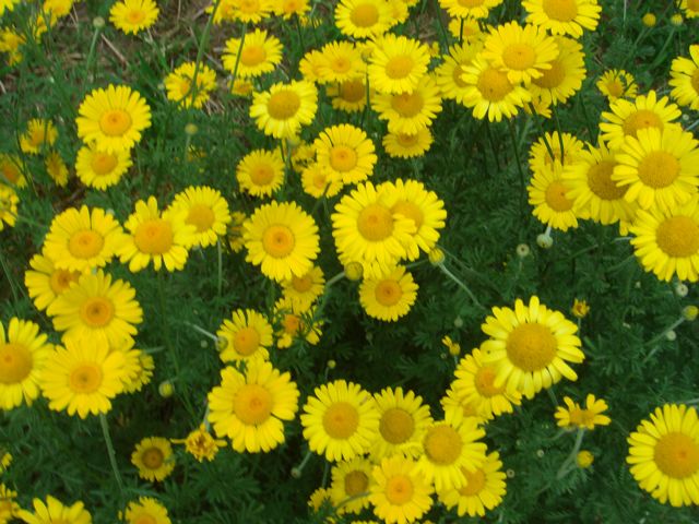 Also from a previous posting, there are the cheery golden marguerites or marguerite daisies (Anthemis tinctoria):