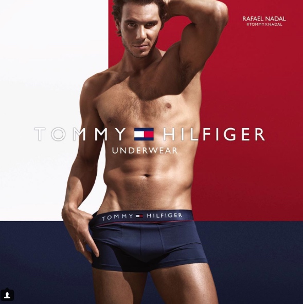 Recent hot news in the fashion world: tennis great Rafael Nadal has moved from mere sexy (mostly shirtless) fashion modeling (for Armani) to hard-core underwear modeling (for Tommy Hilfiger). Here he is, just barely in his Tommys and projecting steamy desirability:
