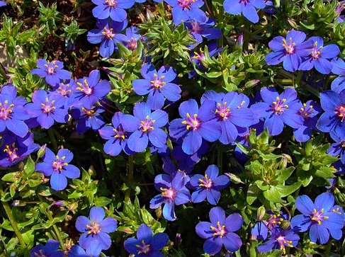 Anagallis is a genus of about 20–25 species of flowering plants in the family Primulaceae, commonly called pimpernel and perhaps best known for the scarlet pimpernel referred to in literature. The botanical name is from the Greek, ana, “again”, and agallein, “to delight in”, and refers to the opening and closing of the flowers in response to environmental conditions.
