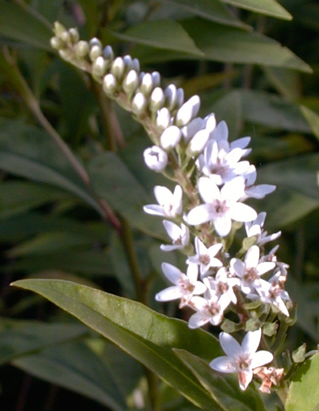 And L. clethroides, the wonderfully named gooseneck loosestrife, shown here in a 1998 photo from my Ohio garden (taken by Elizabeth Daingerfield Zwicky):