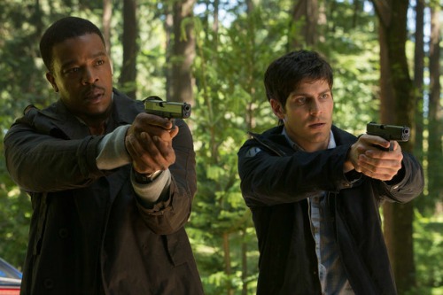 Monroe and Rosalee are both Wesen — Monroe Blutbad (wolf-like, though Monroe is vegan), Rosalee Fuchsbau (fox-like). Wesen identities are hereditary, so Monroe and Rosalee embark on a “mixed marriage”. Hank and Juliette are both ordinary human beings; Nick introduces Hank to the world of Grimms and Wesen early on in the series, since Portland, in addition to being enormously rainy, is also packed with Wesen, who get in the way of Nick and Hank’s police work. Later on, Juliette is taught about this supernatural world.
