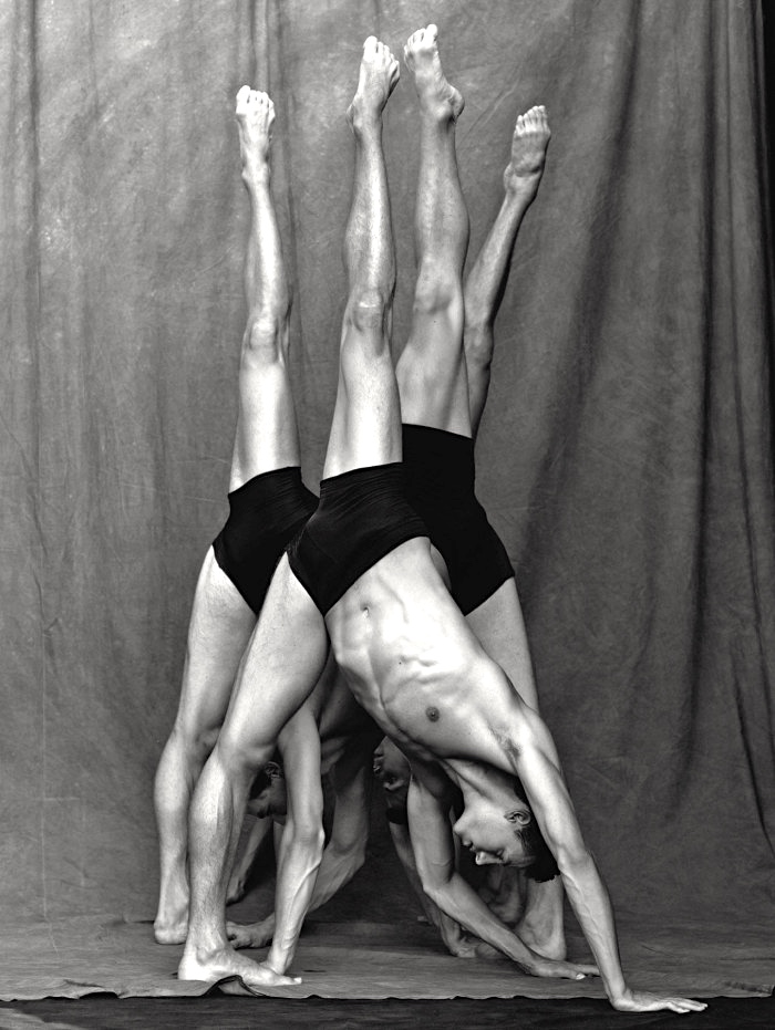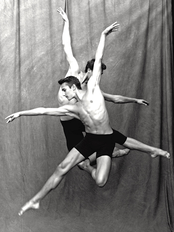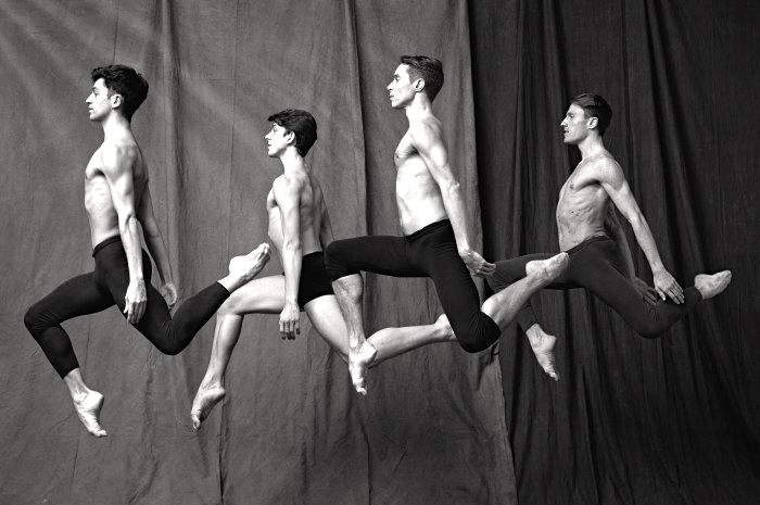 … The photographs, shot in a clean studio against a rough cloth backdrop, are guided by an abstract and almost sculptural sense of form. There are no arabesques or pirouettes, just shapes and compositions reminiscent of flowers and what Brookes calls his initial inspiration of “birds falling from the sky,” with hints of Rodin’s muscular sculpture thrown in. The photographer says that his driving instinct was to capture the dancers’ strength as athletes, rather than following the stereotypical ideas of classical ballet as “sensitive” and “ethereal.”
