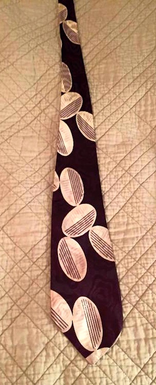 Vintage ties. For a while now, my friend Steven Levine has been posting to Facebook with photos of his vintage tie-of-the-day, from his enormous collection of wonderful quirky ties, all bought for a (very short) song at second-hand stores, estate sales, and the like. Two with abstract designs: