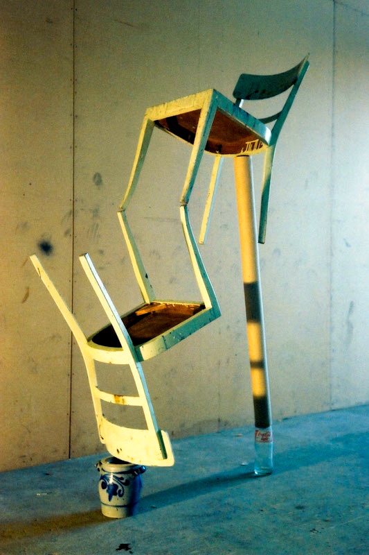 Peter Fischli (born 8 June 1952) and David Weiss (21 June 1946 – 27 April 2012), often shortened to Fischli/Weiss, were an artist duo that had been collaborating since 1979. … Their best-known work is the film Der Lauf der Dinge (The Way Things Go, 1987), described by The Guardian as being “post apocalyptic”, as it concerned chain reactions and the ways in which objects flew, crashed and exploded across the studio in which it was shot. Fischli lives and works in Zurich; Weiss died on 27 April 2012.