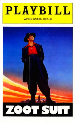 Zoot Suit is a play written by Luis Valdez, featuring incidental music by Daniel Valdez and Lalo Guerrero. Zoot Suit is based on the Sleepy Lagoon murder [1942] trial and the Zoot Suit Riots [1943]. Debuting in 1979, Zoot Suit was the first Chicano play on Broadway. In 1981, Luis Valdez also directed a filmed version of the play, combining stage and film techniques.