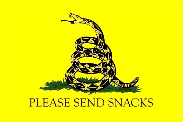 As for #7, the “Snacksden flag”, it’s a reworking of the Gadsden flag. From Wikipedia: