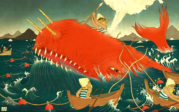 Harpooning The Woolly Whale.This is an illustration by Toronto ON illustrator Michael Wandelmaier from 7/5/08. From a showcase website: