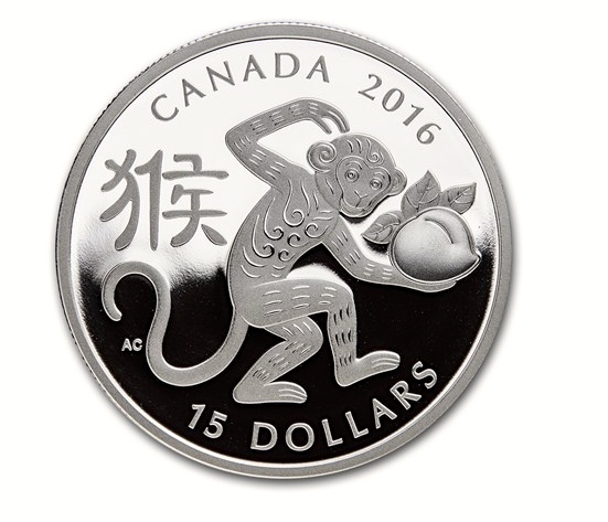 Today is Super Bowl Sunday, but tomorrow is a real holiday: the Lunar New Year, ushering in the Year of the Monkey (next week we get a Valentine’s Sunday then for Americans on Monday, Presidents Day). A Canadian $15 silver coin for the occasion: