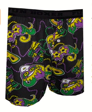 And for men, here are boxers with Mardi Gras masks and beads on them: