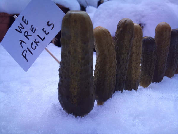 Item 3. Literal pickles, literally on parade, in this playful  2/3/13 photographic composition by Peter Dunne “Pickles on Parade”