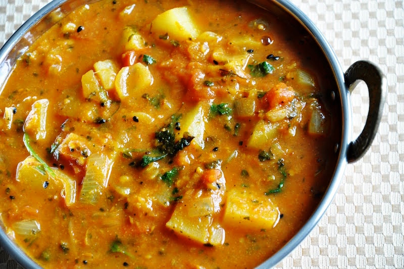aloo [or alu] tamatar. This is a curry, of potatoes in a tomato gravy, pictured here: