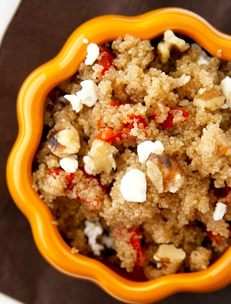 amaranth. On this blog on 6/23/11, “More plants of love”, wih a section on the amaranth, or pigweed, whose seeds can be used as a substitute for wheat, for instance in tabbouleh- or couscous-like dishes. As in this 11/11/11 posting on a food site about Sun-Dried Tomato and Goat Cheese [and Walnut] Amaranth “Couscous”, illustrated here: