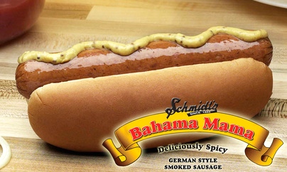 The Bahama Mama a creation from our German meat packing family who possess over 120 years of sausage making experience. The Bahama Mama is a fully cooked natural hickory smoked sausage made from specially selected lean cuts of beef and pork, blended with our secret spice pack formulation. The Bahama is a natural casing old world product. The spice level is moderate so as not to hide the flavor of the quality cuts of beef and pork used.