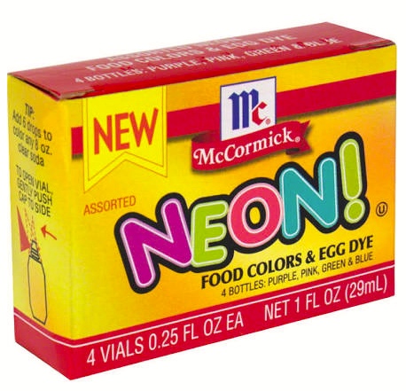 Earlier on this blog, from 4/17/14, “Lurid Easter food”, on vintage (1957) McCormick colors “for the gayest Easter eggs”.