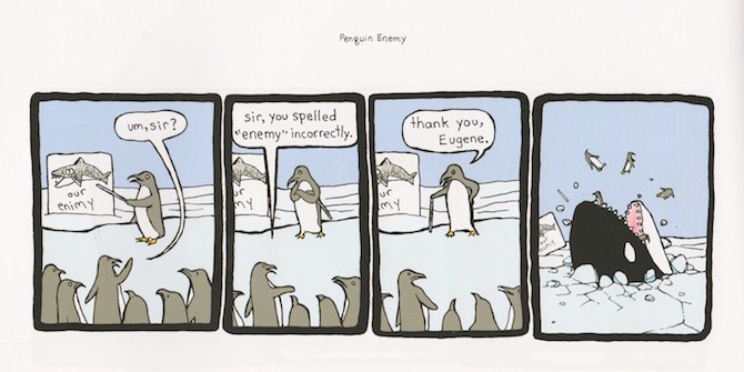 And occasionally there are penguins, sometimes mortally pursued by killer whales: