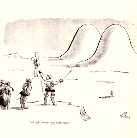 The cartoonist Ed Fisher (who now has his own Page on this blog) is most closely identified with the New Yorker (which published over 700 of his cartoons), but he drew for other publications as well, including the British weekly Punch. William Cole’s 1969 anthology The Punch Line: Presenting Today’s Top Twenty-five Cartoon Artists from England’s Famous Humo(u)r Magazine has a section devoted to him, in fact. From this volume, three cartoons of linguistic interest.