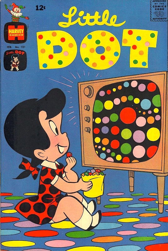 Little Dot was a comic book character published by Harvey Comics about a little girl obsessed with dots, spots, and round, colorful objects.