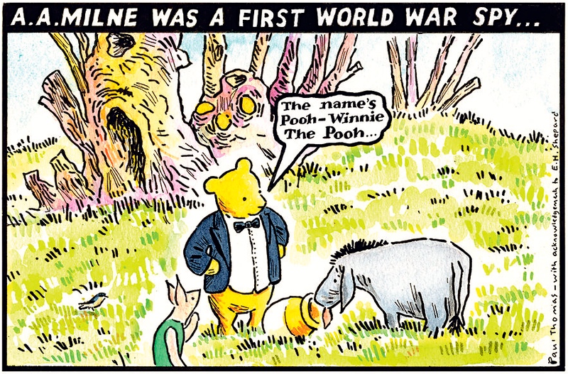 Today’s cartoon by Paul Thomas from The Daily Express is inspired by the revelation that AA Milne, the man who created Winnie-the-Pooh, was a First World War spy.