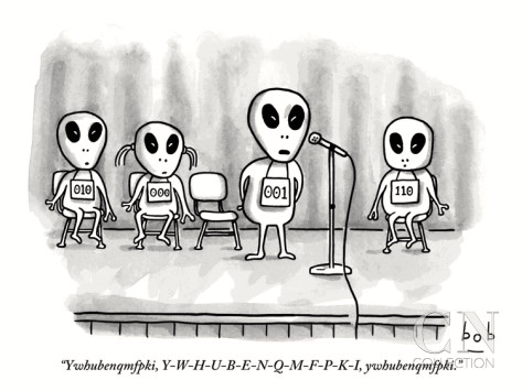 Third and last, another cartoon that requires two recognitions: that the characters in it are space aliens, as conventionally represented:
