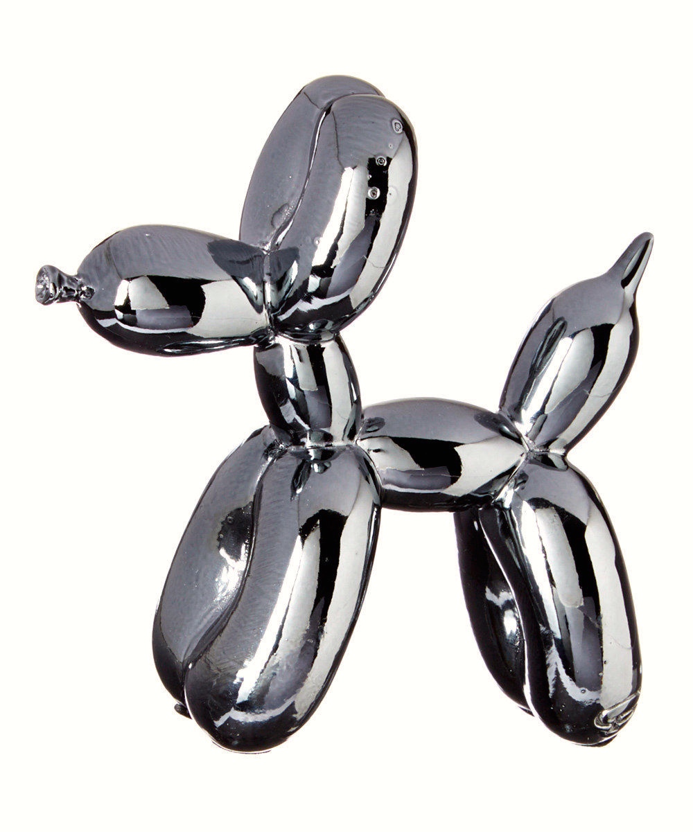 Koons counts as high art. But his balloon dogs have now been replicated as objects of popular culture themselves, sold as items of home decor. Here’s a resin dog with metallic finish, available on Amazon.com in a variety of colors: