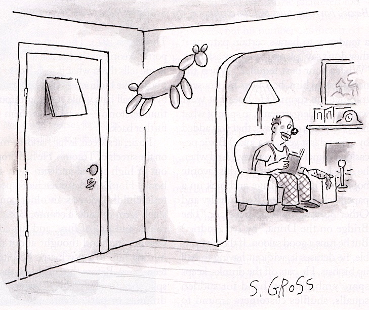 In the latest New Yorker (September 12th), Sam Gross’s clown and his balloon dog return to the magazine: