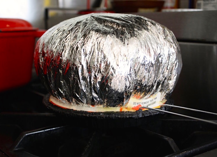 Jiffy Pop is a popcorn brand of ConAgra Foods. The product combines popcorn kernels, oil, and flavoring agents with a heavy-gauge aluminum foil pan and expandable, light-gauge aluminum foil cover. As the pan is heated, the popping corn causes the cover foil to unfold and puff up. “Jiffy” in the name alludes to the short cooking time.