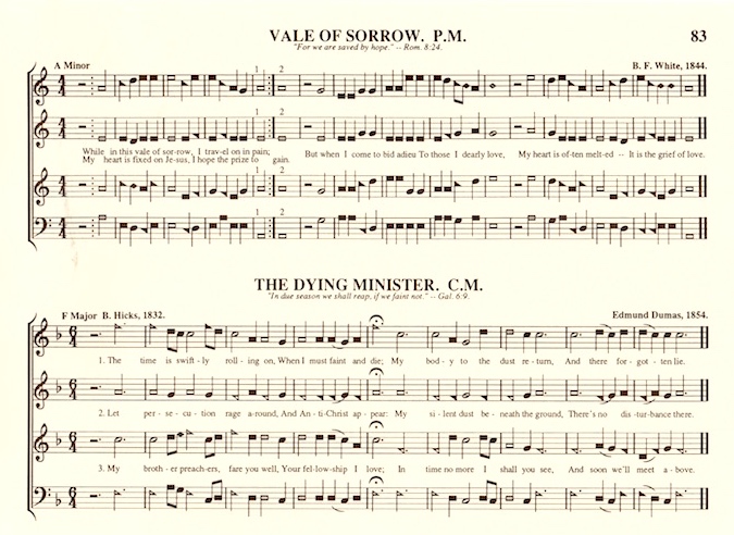 But… there is a resource, the excellent Sacred Harp Concordance (1992, keyed to the 1991 edition of the book). There, we discovered not one, but three, songs with Antichrist in them. Well, three settings of the very same text (with the first two verses above), in which nothing whatsoever, not even the appearance of the Antichrist at the End of Times, will disturb the silence of the singer’s remains.