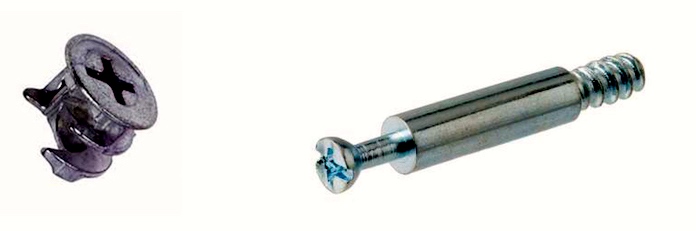 A crucial design element was something made especially popular by IKEA, the Swedish giant of needs-assembly furnishings: cam lock nuts, tightened on cam screw posts by turning a screwdriver. A nut and post pair: