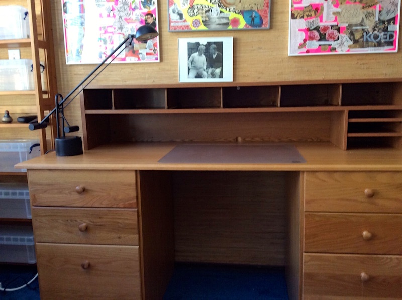 Meanwhile, here’s the oak desk (originally from the study in my Columbus OH house, now in my Ramona St. bedroom), with accessories: