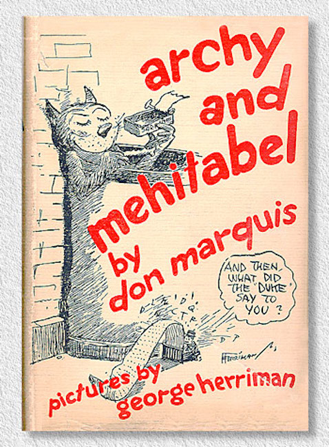 Archy and Mehitabel (styled as archy and mehitabel) are the names of two fictional characters created in 1916, by Don Marquis [pronounced like mark-wiss], a columnist for The Evening Sun newspaper in New York City. Archy, a cockroach, and Mehitabel, an alley cat [who believes herself to be the reincarnation of Cleopatra], appeared in hundreds of humorous verses [mostly free verse] and short stories in Marquis’ daily column, The Sun Dial. Their exploits were first collected in the 1927 book “archy and mehitabel,” which remains in print today, and in two later volumes, “archys life of mehitabel” (1933) and “archy does his part” (1935). Many editions are recognized by their iconic illustrations by George Herriman, the creator of Krazy Kat.