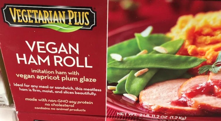 Here you can complain about the name, but you can also be uneasy about the attempt to create foods that look like traditional hunks of meat: a roast turkey, a cured leg of pork. Granted, they’re sliced, but they’re still conceptualized as standard meats (and, presumably, flavored so as to imitate turkey and ham, respectively).