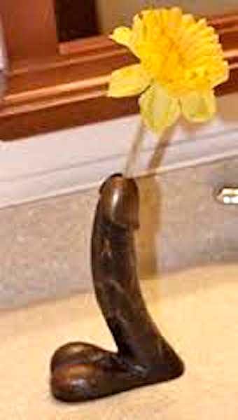 Finally, a wide-mouthed vase that boldly simulates an entire crotch, including an erect penis. No getting around what this one’s about: