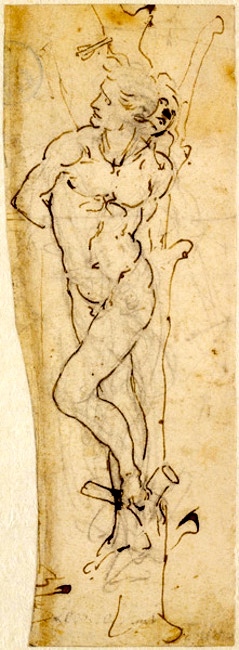 The drawing of the martyred St. Sebastian, attributed to Leonardo (Tajan auction house)