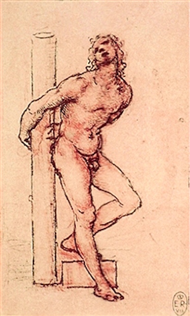 Earlier on this blog, a 5/20/11 posting on the martyrdom of Saint Sebastian as a homoerotic image. An image that appealed to Leonardo, as seen in two authenticated drawings by him, one in the Hamburger Kunsthalle: