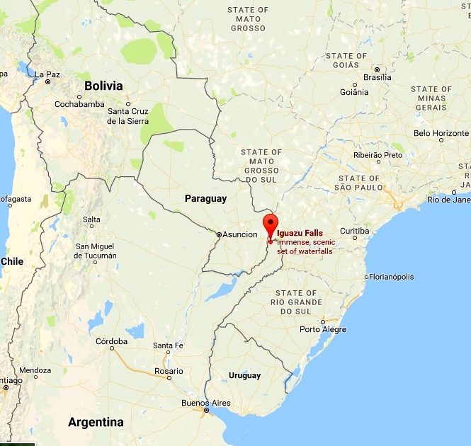 The Iguazu Falls, Iguazú Falls, Iguassu Falls, or Iguaçu Falls … are waterfalls of the Iguazu River on the border of the Argentine province of Misiones and the Brazilian state of Paraná. They are the largest waterfalls system in the world. The falls divide the river into the upper and lower Iguazu. The Iguazu River rises near the city of Curitiba. For most of its course, the river flows through Brazil, however, most of the falls are on the Argentine side. Below its confluence with the San Antonio River, the Iguazu River forms the boundary between Argentina and Brazil.
