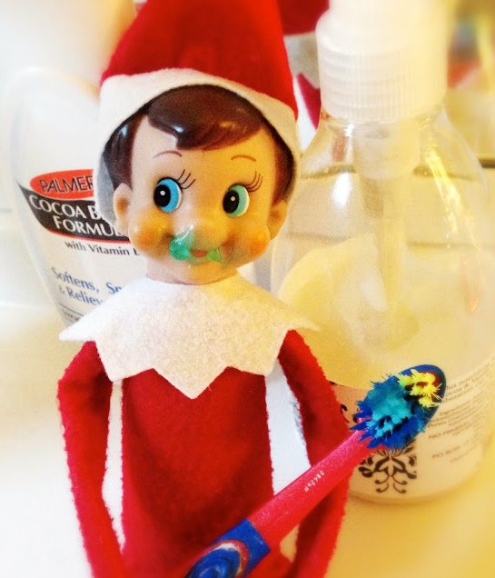 A toothbrush is a phallic symbol. Even better, you use it by putting it in your mouth. And toothpaste works as a seminal symbol. So in #4 we have a scout elf with a big ol’ hard-on and a cumface. Isn’t he cute?