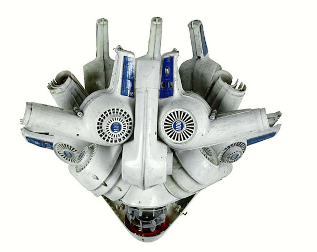 Wind Mask East, 1990, consists of blow dryers attached by artist Willie Cole, whose works explore identity, race, consumerism, the environment and other contemporary concerns