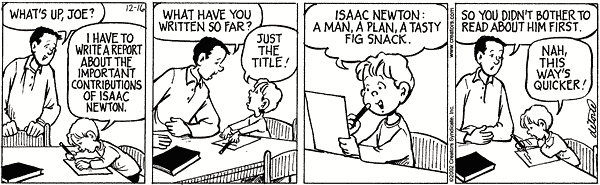 A recent One Big Happy has Joe cutting corners on a book report: