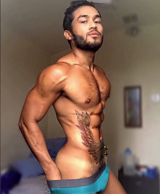 Loresca grew up poor in Manila; he’s openly gay and — this is important — his natural presentation of self is recognizably gay; he has a ripped, carefully developed masculine body; he now lives in London (where he has a boyfriend); and, incidentally, his English is pretty rocky, so he mostly uses Pilipino / Filipino, the national language of the Philippines (and the standard register of the Austronesian language Tagalog).