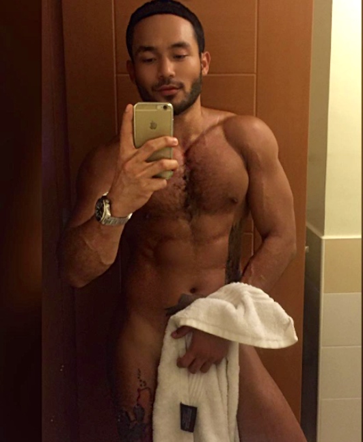 Back to Loresca and his gender performances. Here he is in a neutral pose, taking a cock-tease selfie that shows off his hot body: