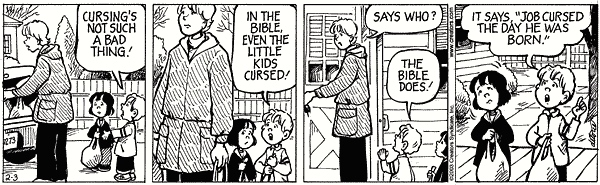 You could accuse Joe of willfully misunderstanding, since it’s extraordinarily unlikely that anyone would be cursing on the day they were born — but then Joe’s just a little kid, and maybe things worked differently back in biblical days.