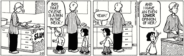 Google Ngram shows pain in the neck at modest levels going way back, but presumably in reference to literal pains. It then shoots up in the 1920s. On the other hand, pain in the ass doesn’t really shoot up until the 1960s and 70s; eventually it substantially overtakes pain in the neck — no doubt a reflection of greater directness (or, if you will, crudeness) in speech over these years. Now, it seems, even little kids like Ruthie know the gluteal variant, and also know that it’s not something you’re supposed to say in polite company.