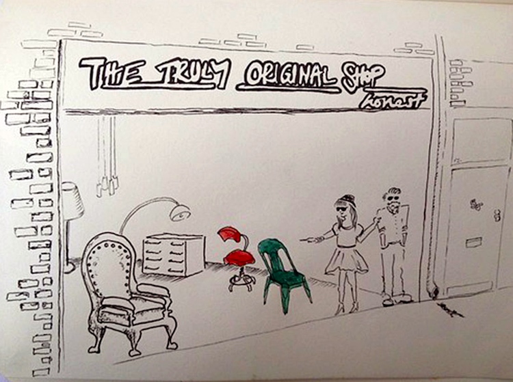 And from her equally playful illustrations, the first in her “Paul and Friedrich” series, about “Two chairs in their early thirties, which deal with everyday life and everyday life until one day they simply decide to flee. Out of protest.”: