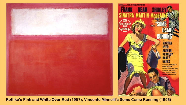 The title of an exhibition at the Anderson Collection at Stanford, which, in the gallery’s release, “pairs and compares movies and paintings from the early to mid-twentieth century”. A substantial number of pairings, sprinkled throughout the Abstract Expressionism section of the museum, among other paintings from the artistic movement, broadly understood. Also from the gallery’s release, one example: