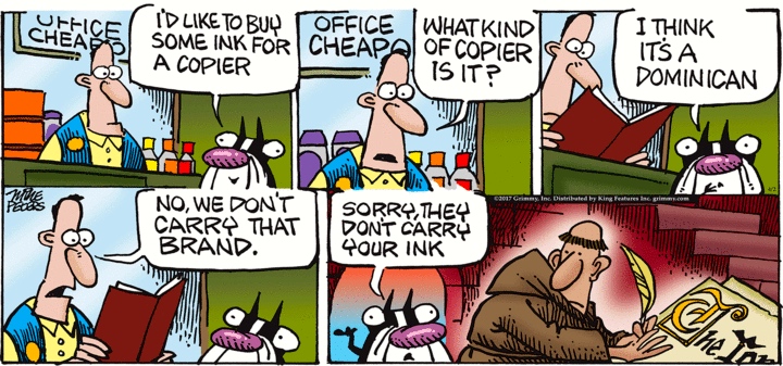 I’m guessing that Dan Piraro thinks the brown habit looks more monastical and he doesn’t actually know anything about the garb of the orders.